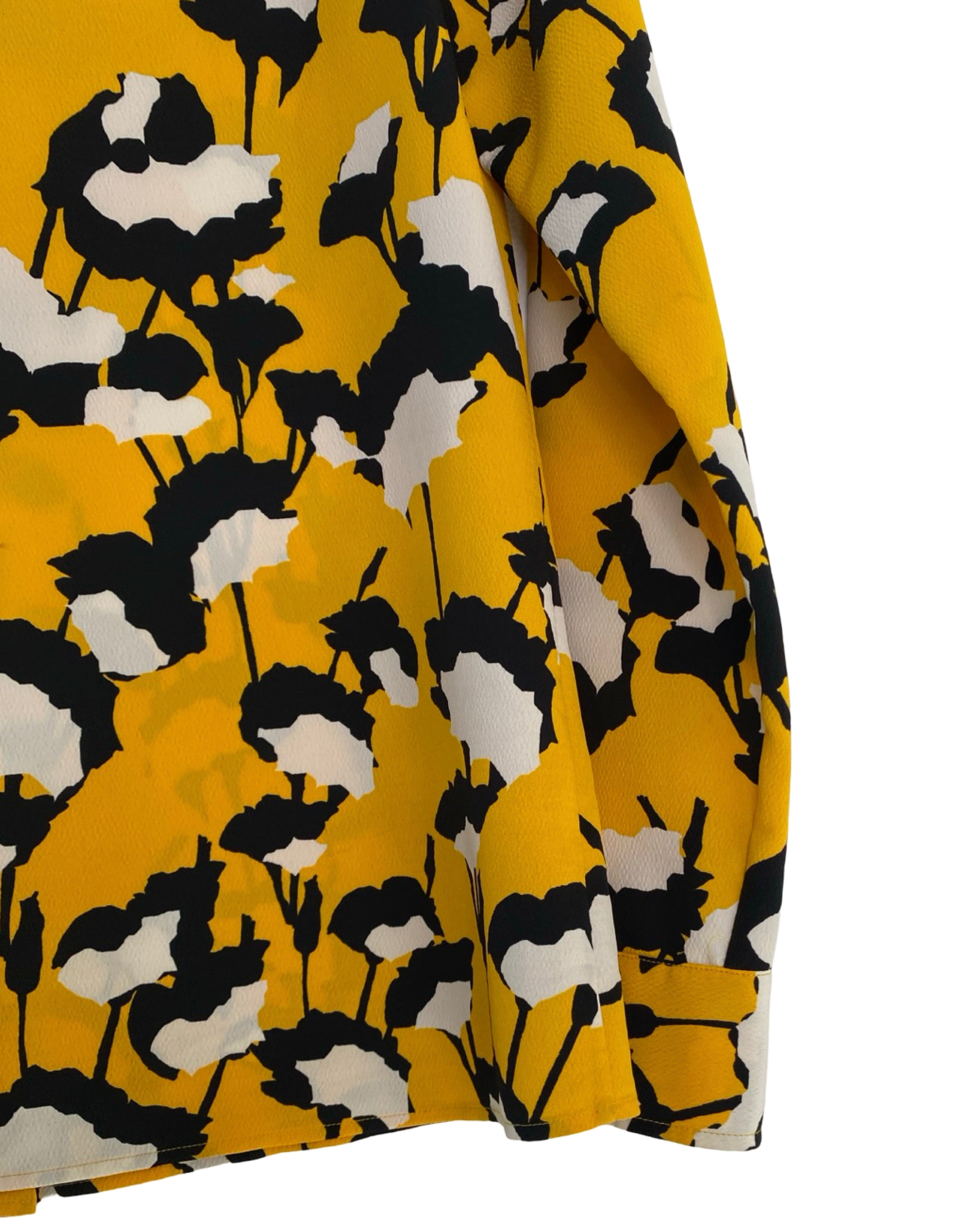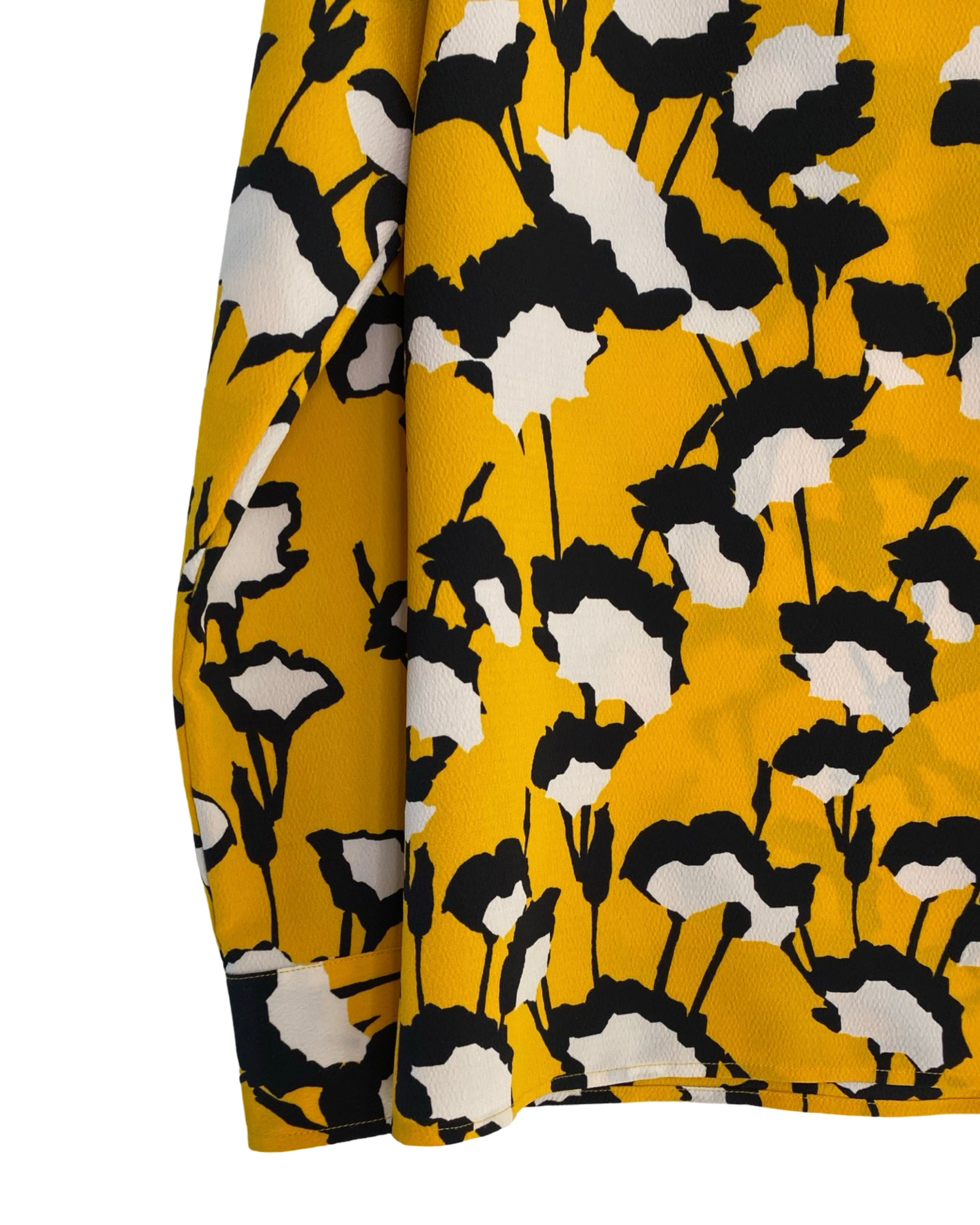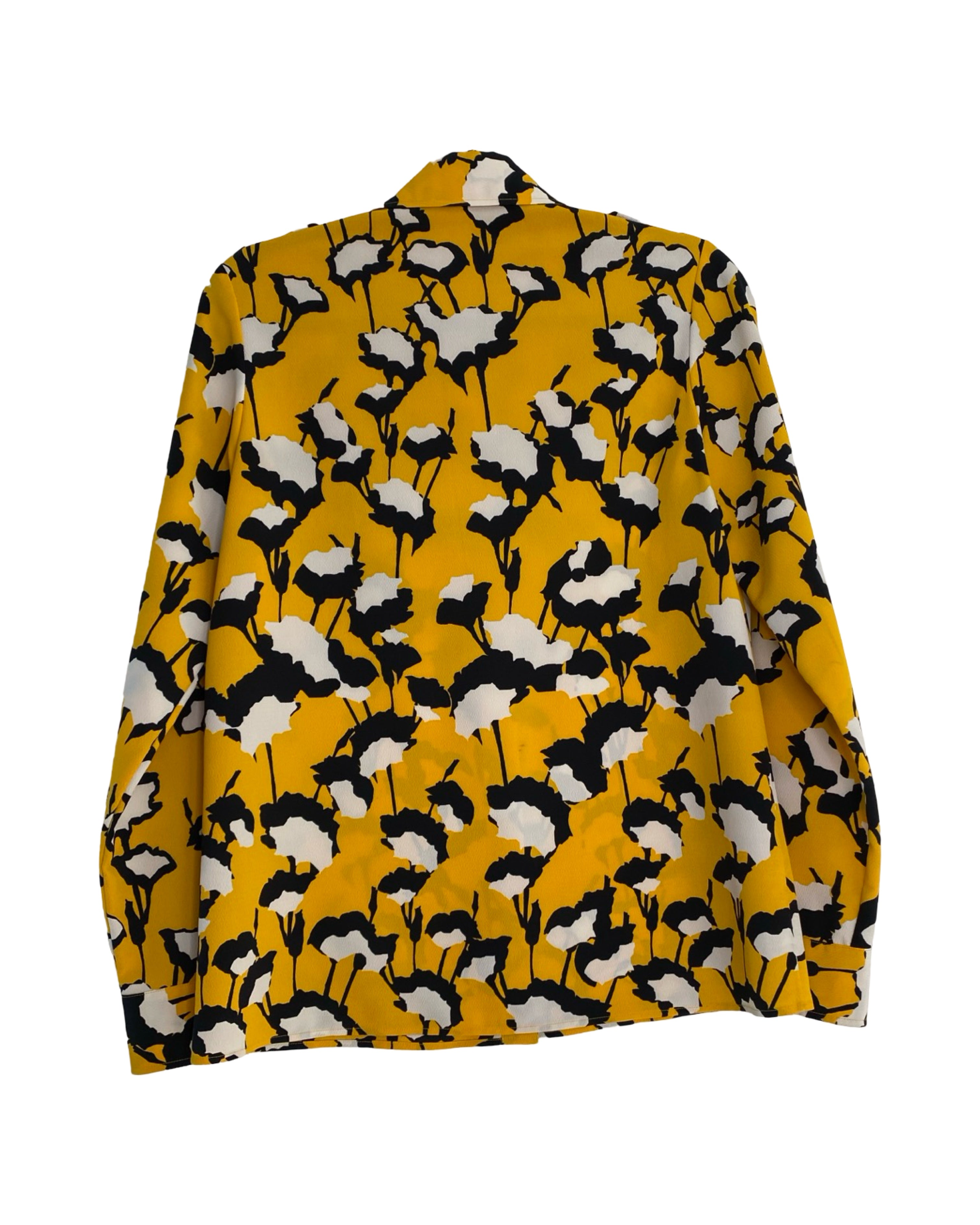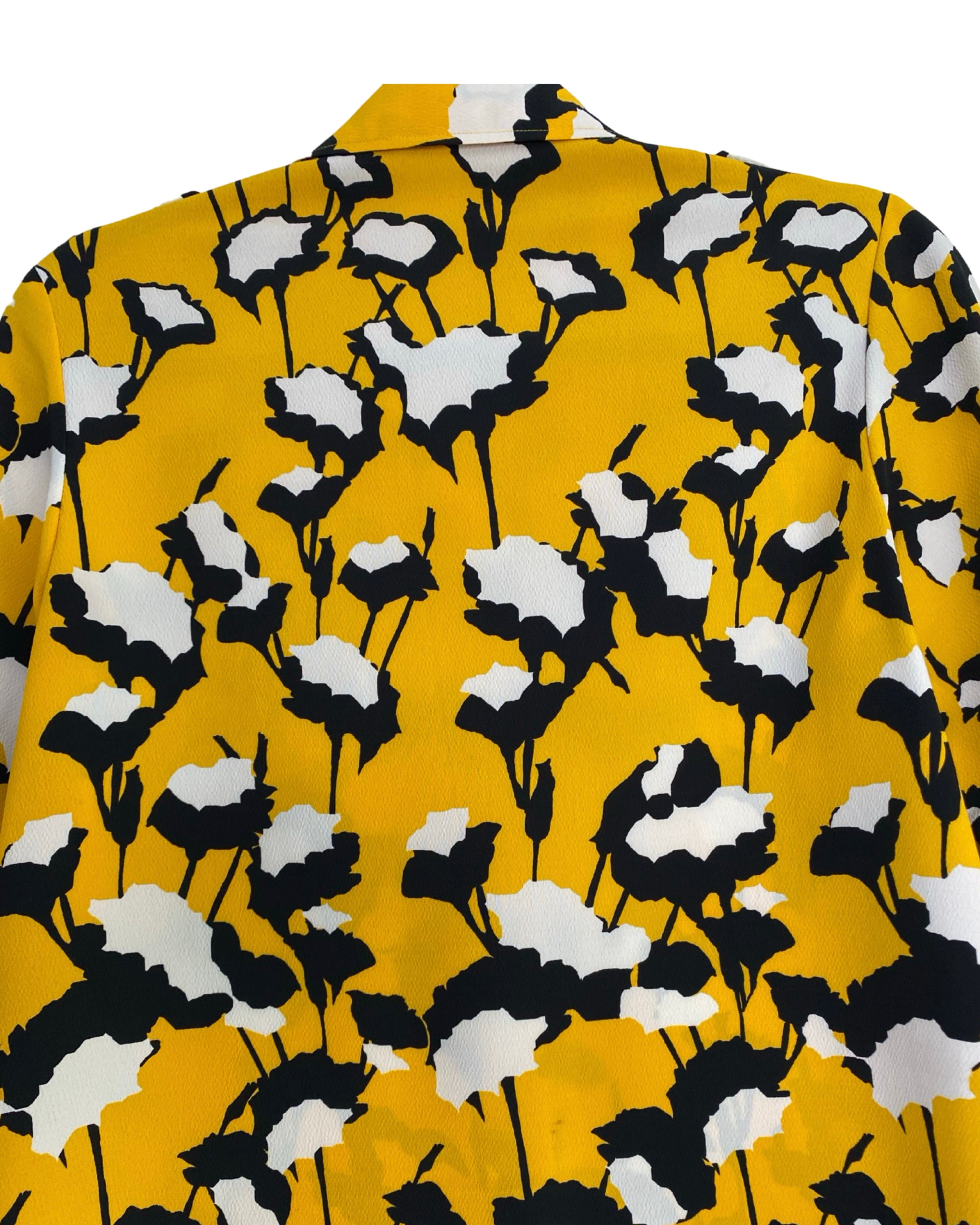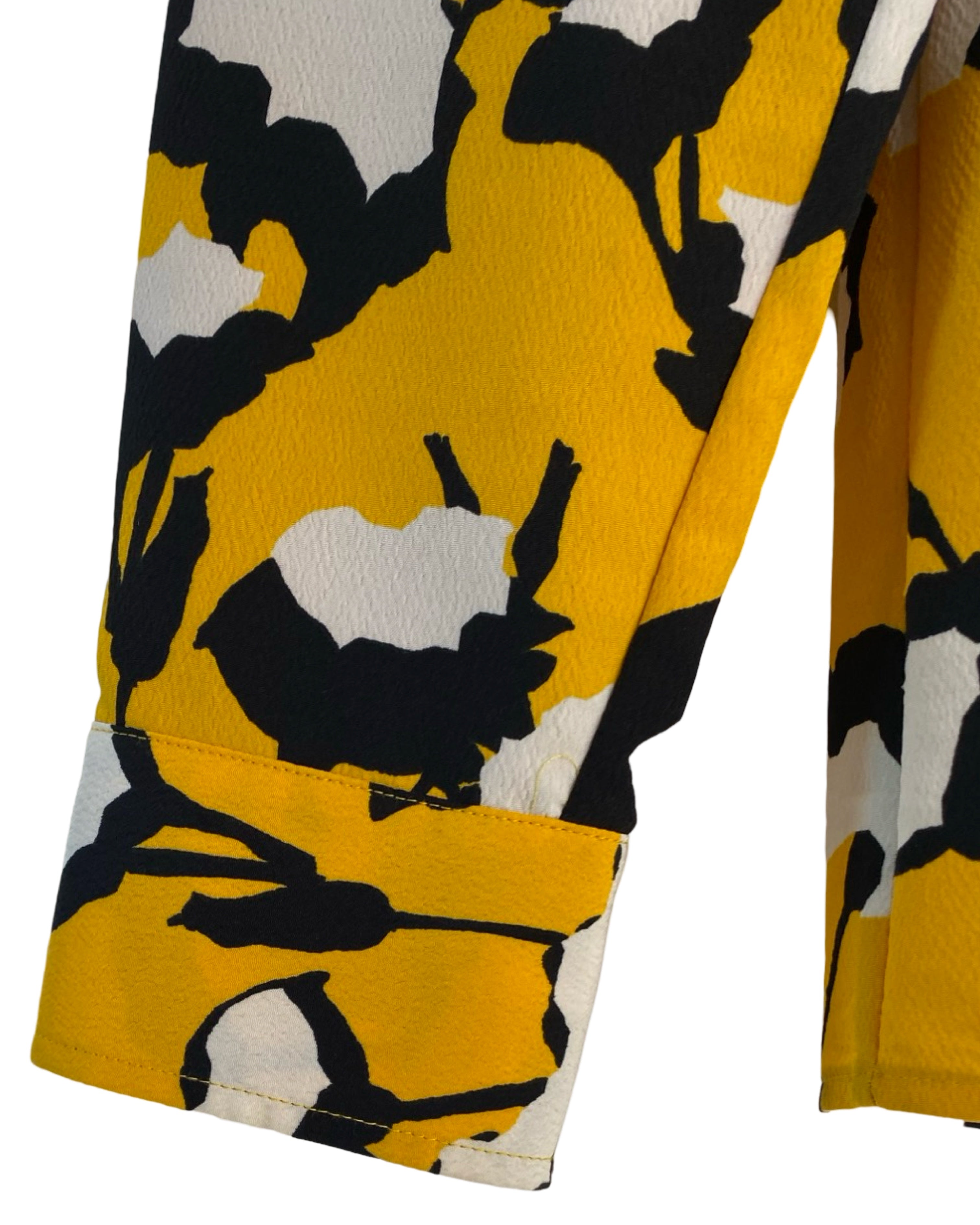 Elevate your style with the Hugo Boss blouse. Made with premium polyester viscose mixed material. This jacket has shiny yellow buttons. This blouse adds a touch of sophistication to your outfit. With a V neckline, it seamlessly combines fashion and comfort. Available in size S.