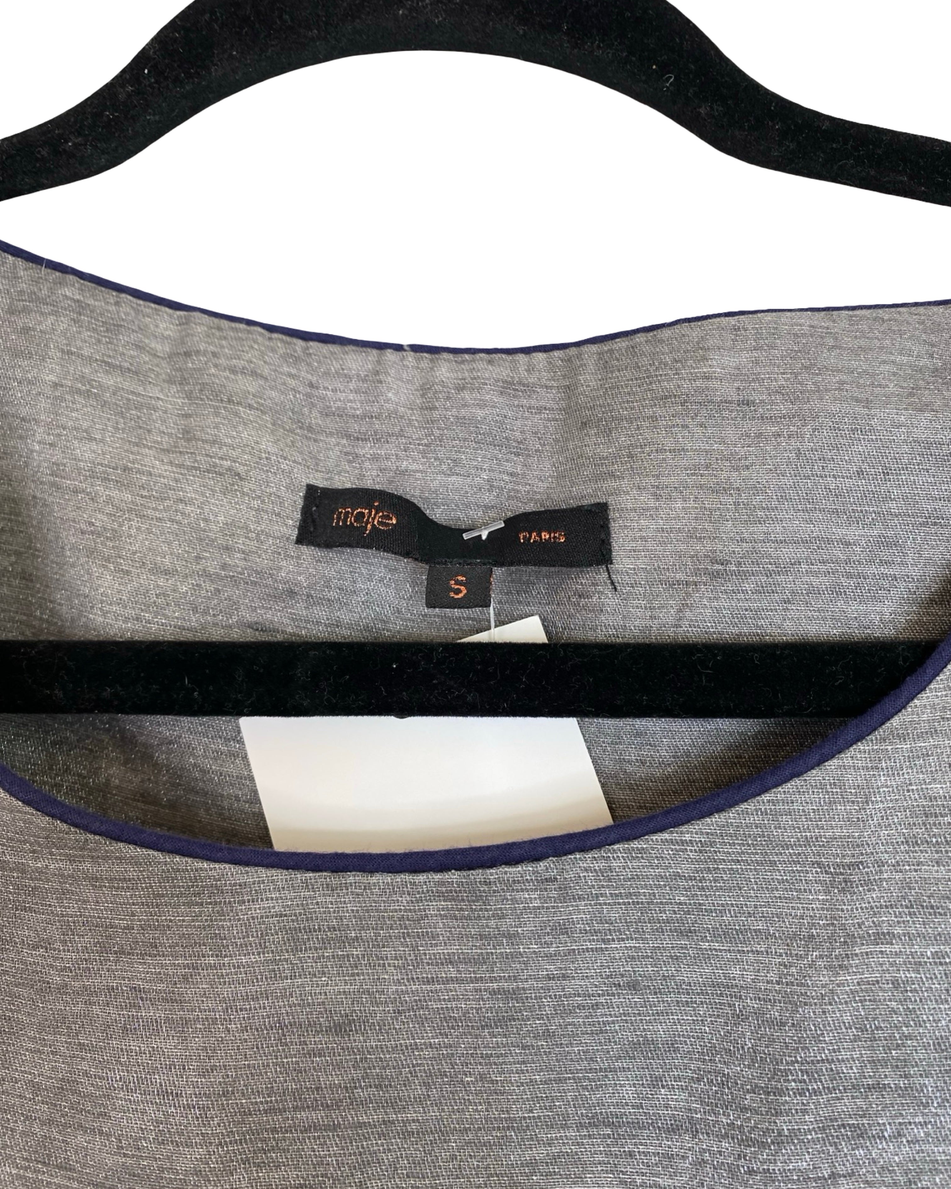 A minimalist staple with a modern edge, this Maje top is crafted from a soft linen and polyester blend in a versatile grey tone. Lightweight and breathable, it offers effortless style and comfort, making it perfect for everyday wear or layering. With its refined simplicity, this piece captures Maje’s signature Parisian cool. Designed in size S, it measures 63 cm in full length, 46 cm from armpit to armpit, and 30 cm in sleeve length, finished in a timeless grey shade.