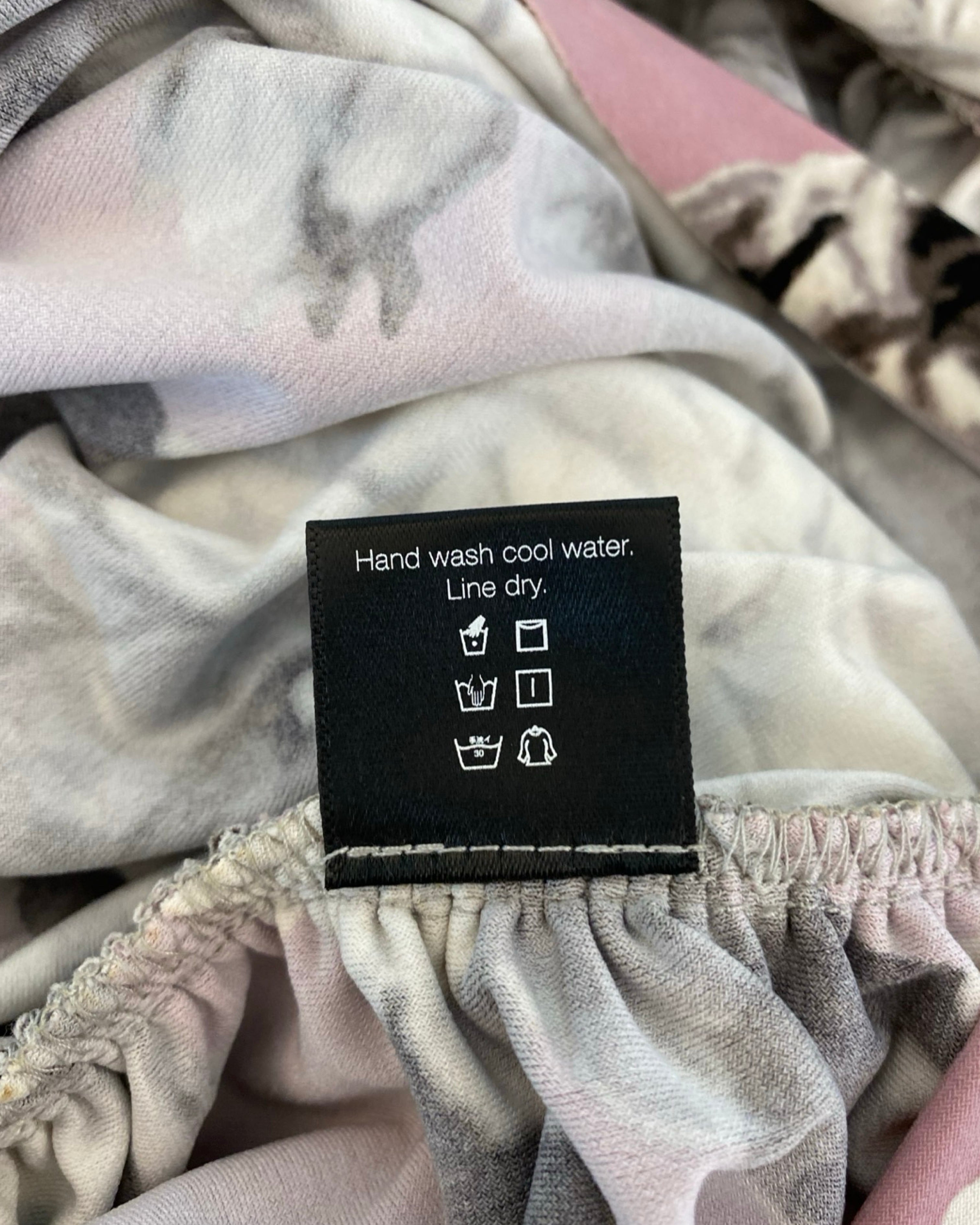 Delicate and feminine, this Norma Kamali mini dress features a lilac base adorned with black and white floral motifs. Lightweight and effortlessly chic, it drapes beautifully for a flattering silhouette, making it perfect for daytime events or casual outings. A versatile piece that embodies Norma Kamali’s signature modern elegance, it is crafted from a polyester-spandex blend in size S, measuring 90 cm in full length and 31 cm from armpit to armpit, finished in a soft lilac with black and white accents.
