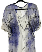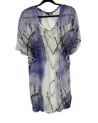 Effortlessly chic, this St. Martins cover-up in size S features a striking blue, black, and white pattern that reflects the brand’s contemporary aesthetic. Crafted from a lightweight viscose and polyester blend, it drapes beautifully over swimwear or can be layered with casual outfits, offering versatile wear for holidays, beach days, or relaxed summer evenings. Both stylish and practical, this piece measures 90 cm in full length with a 40 cm armpit-to-armpit fit and 21 cm sleeve length, adding a touch of sophistication to any look.