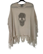 Crafted from luxuriously soft cashmere, this 27 Miles cape offers effortless elegance with a contemporary edge. The neutral beige hue makes it endlessly versatile, while the intricately detailed skull motif adds a bold statement. Lightweight yet warm, it drapes beautifully over the shoulders, making it perfect for layering across seasons. A refined blend of comfort and style for those who appreciate timeless luxury with a modern twist, this one-size piece in beige cashmere measures 70 cm in full length and 73 cm from armpit to armpit.