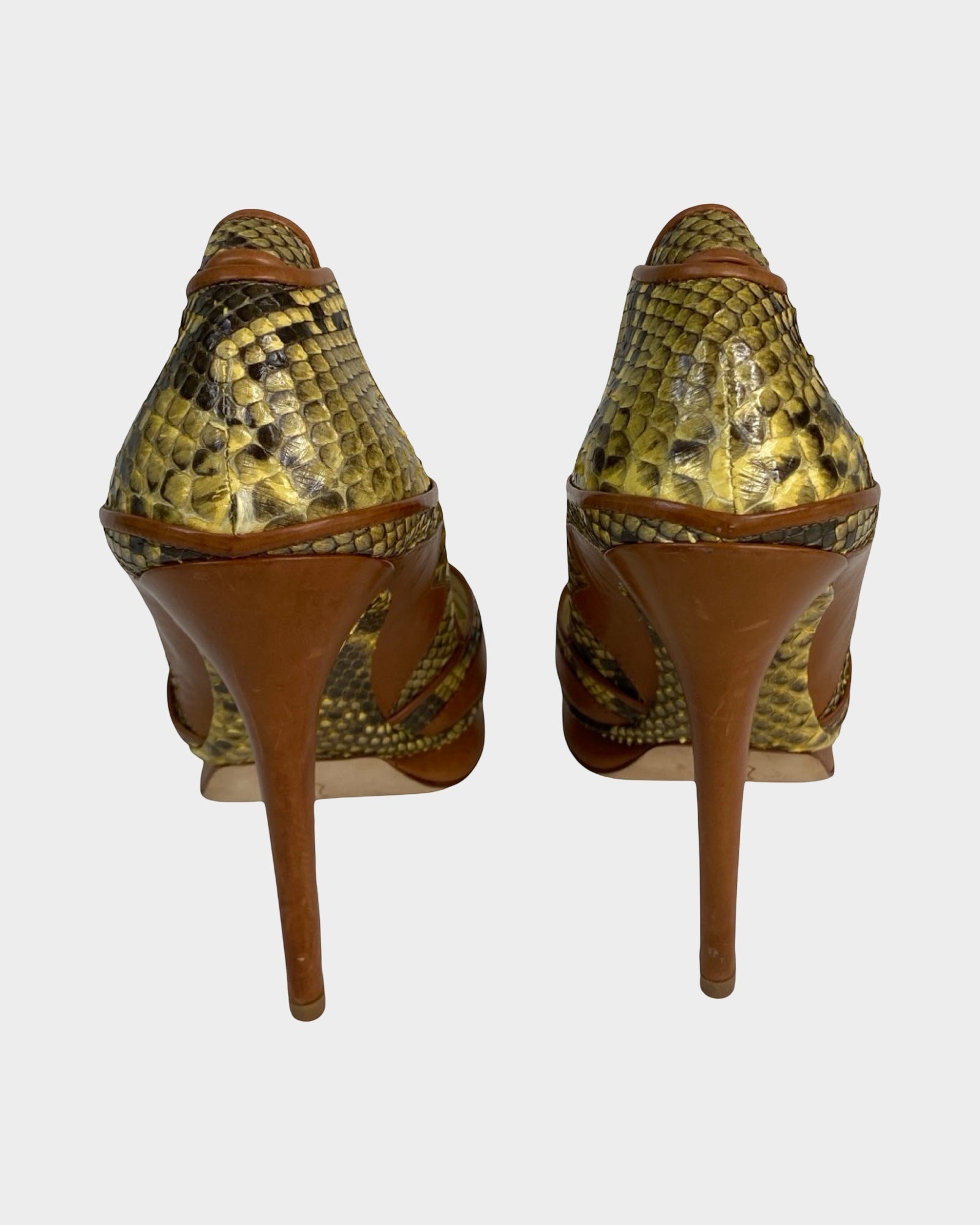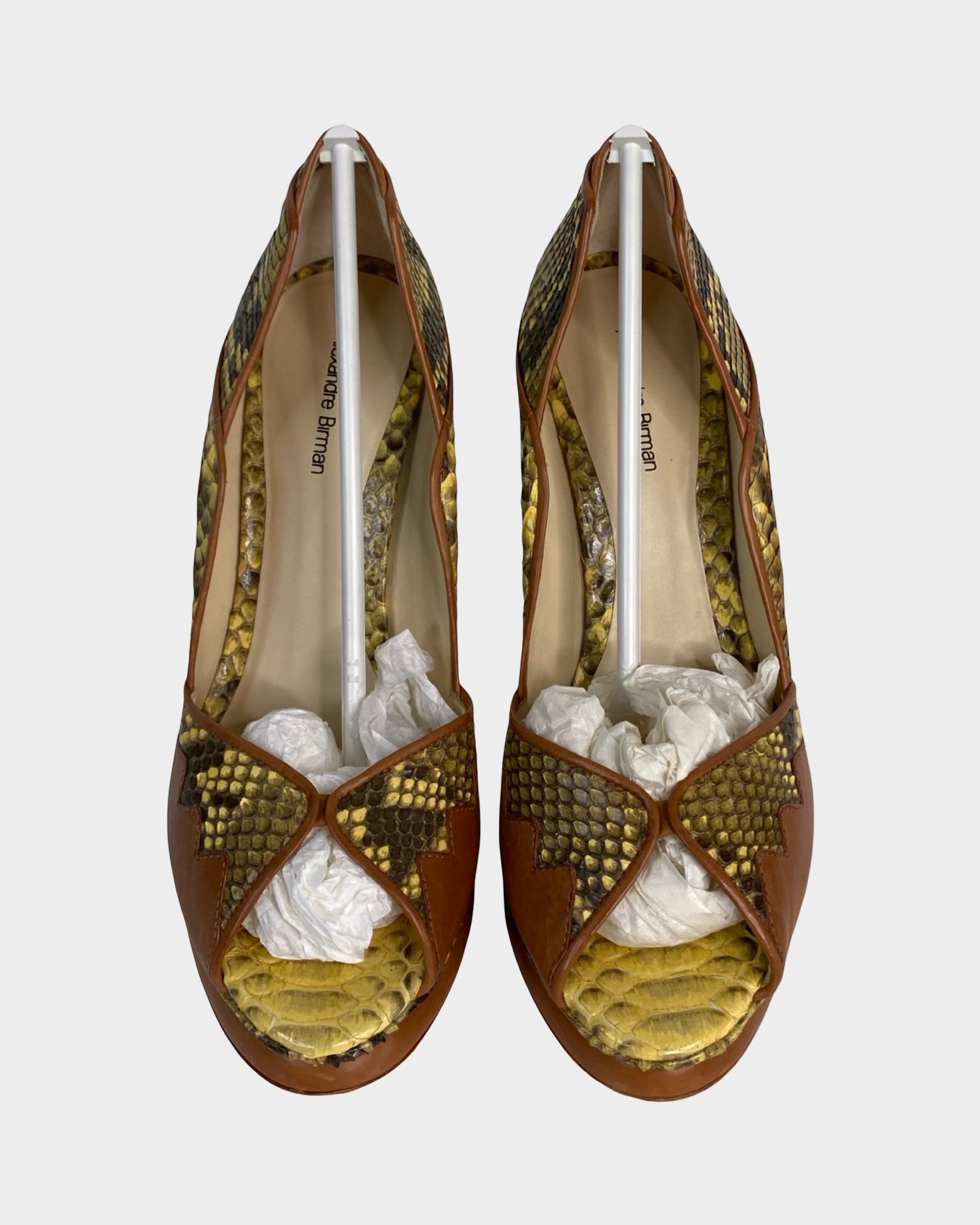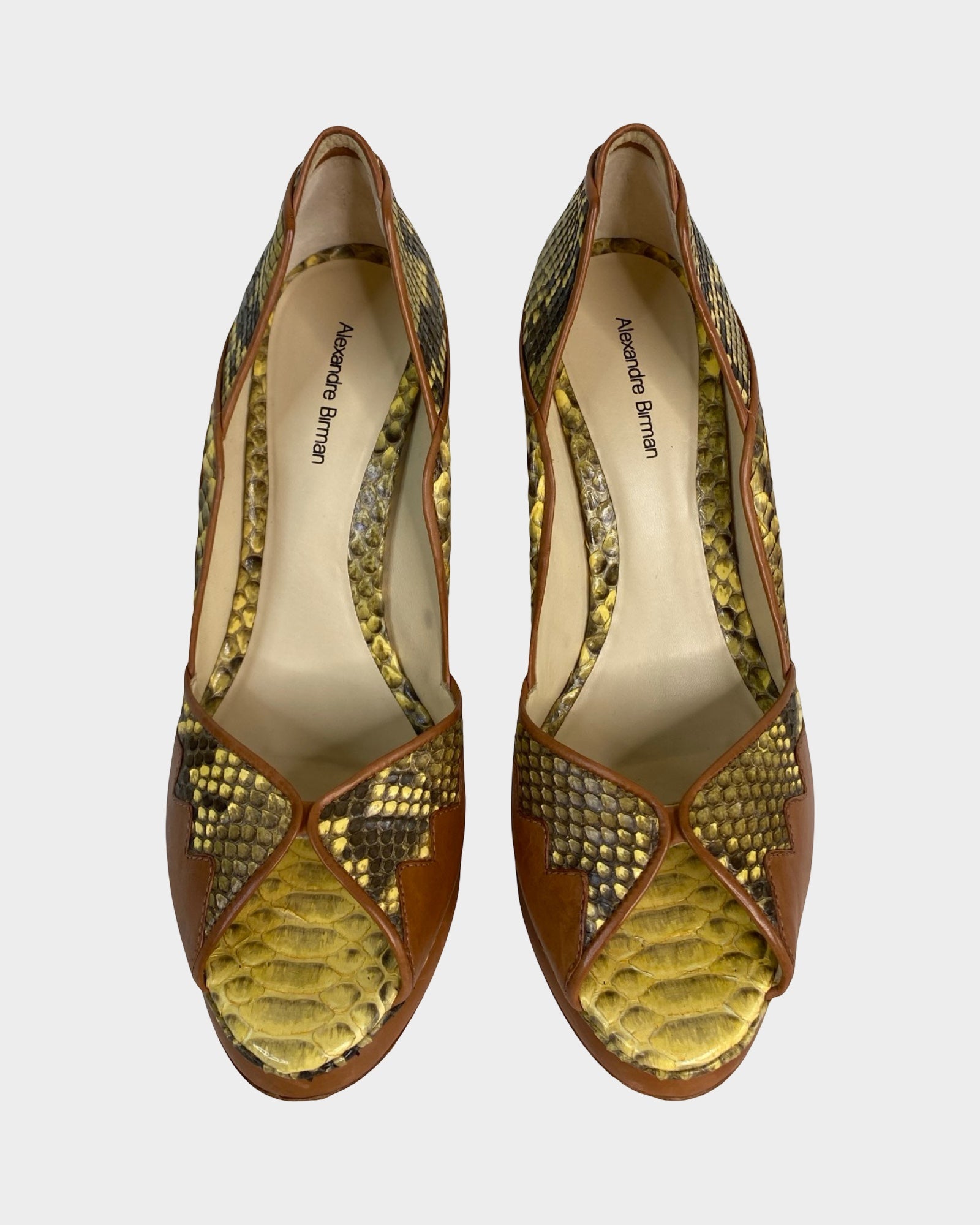 Elevate your wardrobe with these striking Alexandre Birman pumps, where refined craftsmanship meets bold design. Crafted from supple leather and luxurious snakeskin, they showcase a captivating yellow and brown palette that commands attention. The textured finish and sophisticated silhouette deliver understated glamour, making them an ideal choice for those who appreciate distinctive style without compromise. A statement piece that transcends seasons.