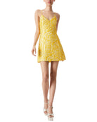 Make a statement in Alice + Olivia's yellow jacquard mini dress. The structured design, v-neckline, and crisscross back create a flattering silhouette. With a lantern skirt and zip closure, this dress is perfect for many occasion. Crafted in polyester, this luxury piece is a size XS.