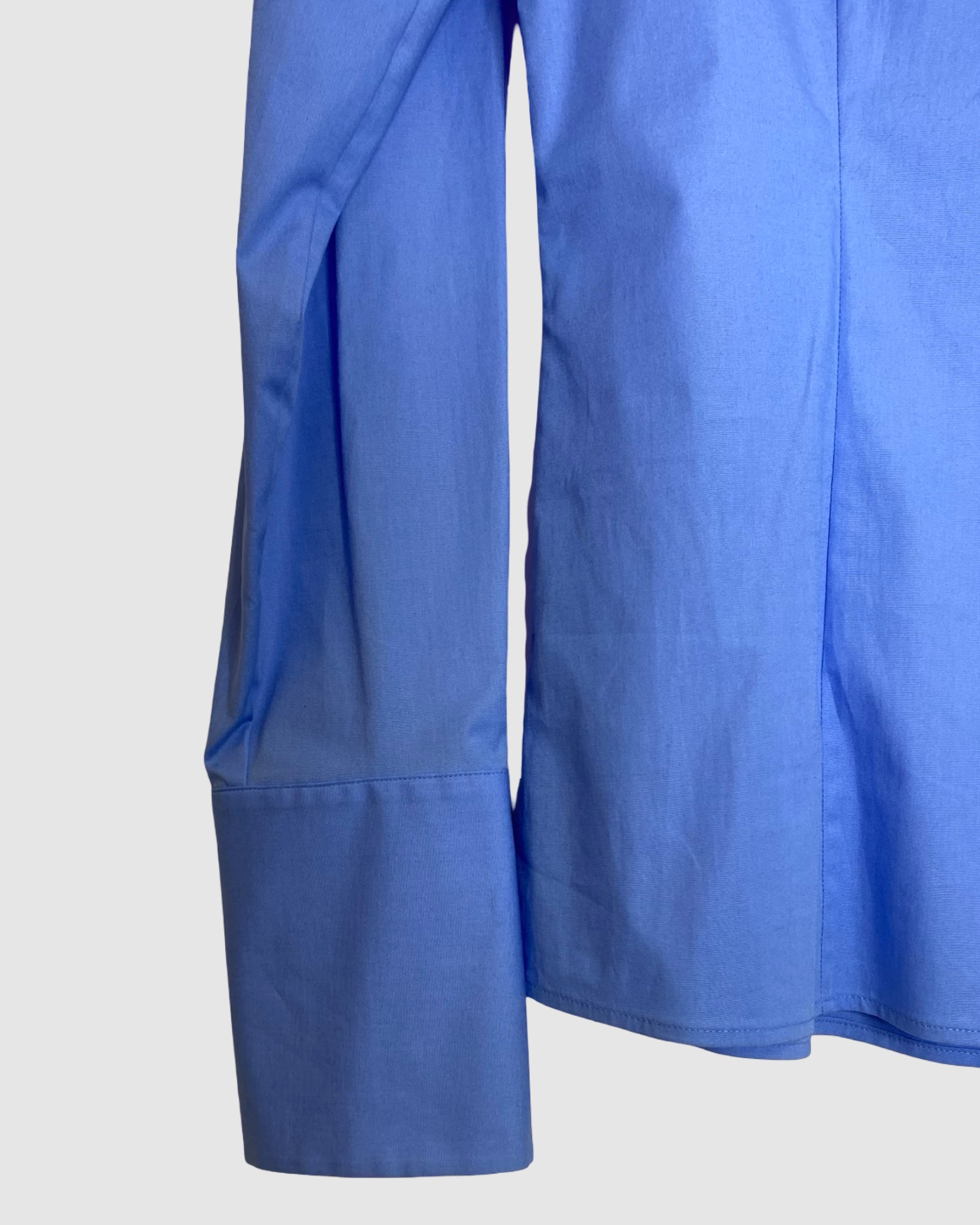 Chic and sophisticated, this BOSS women’s blouse comes in a beautiful blue tone with a flattering, tailored fit that cinches at the waist. Crafted from soft cotton, it’s designed to enhance the silhouette and offers a polished, elegant look perfect for both office wear and smart occasions. Size: S.