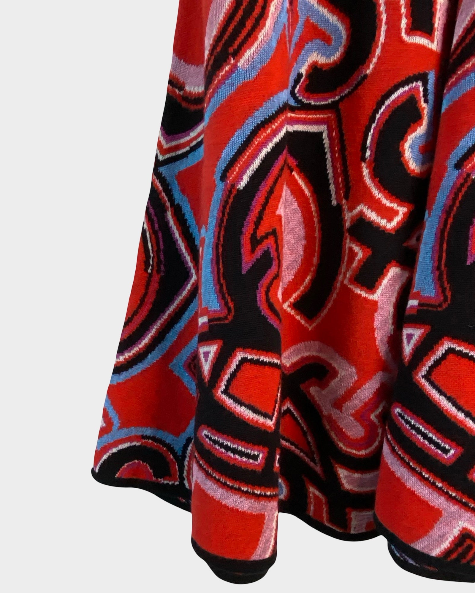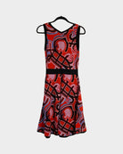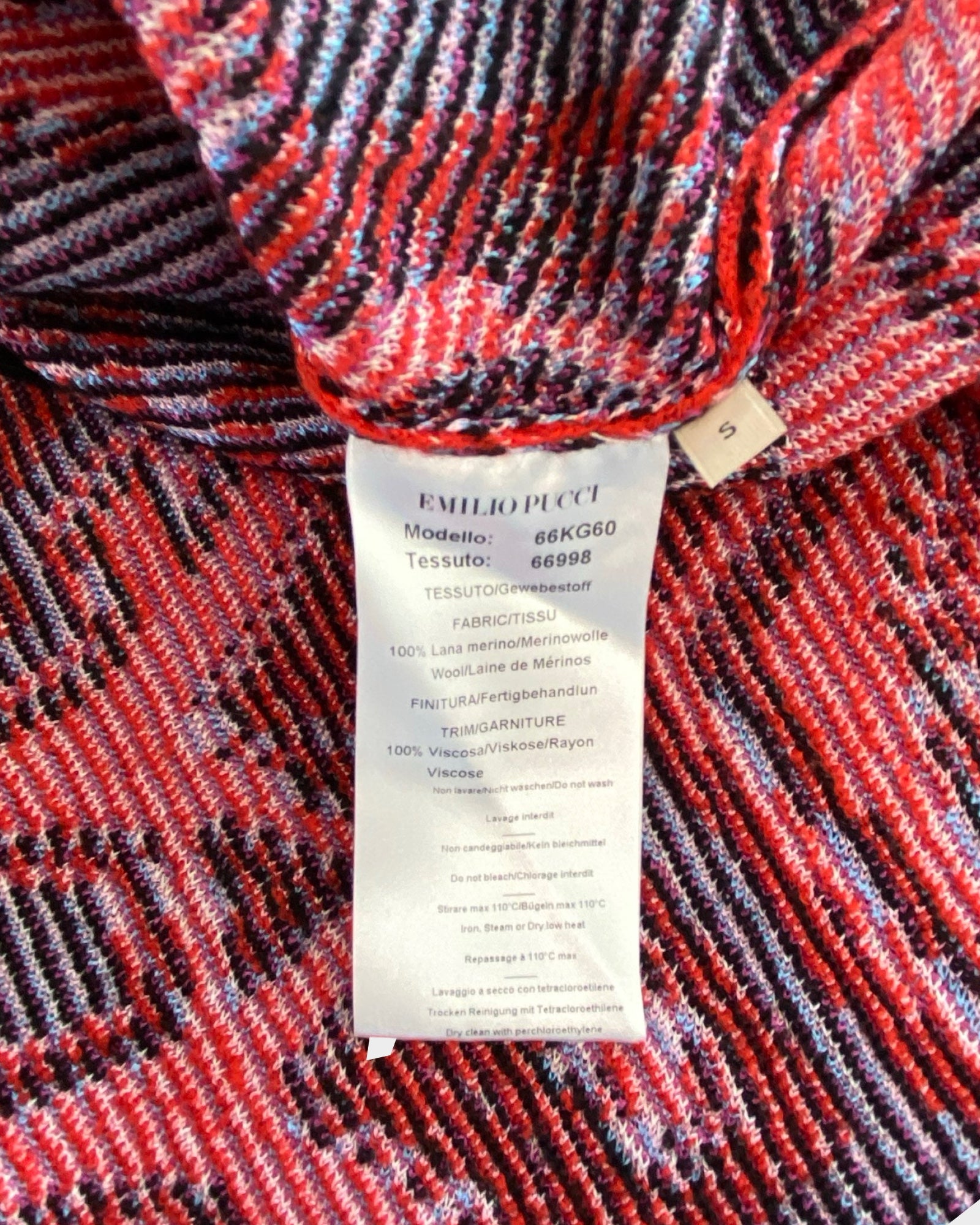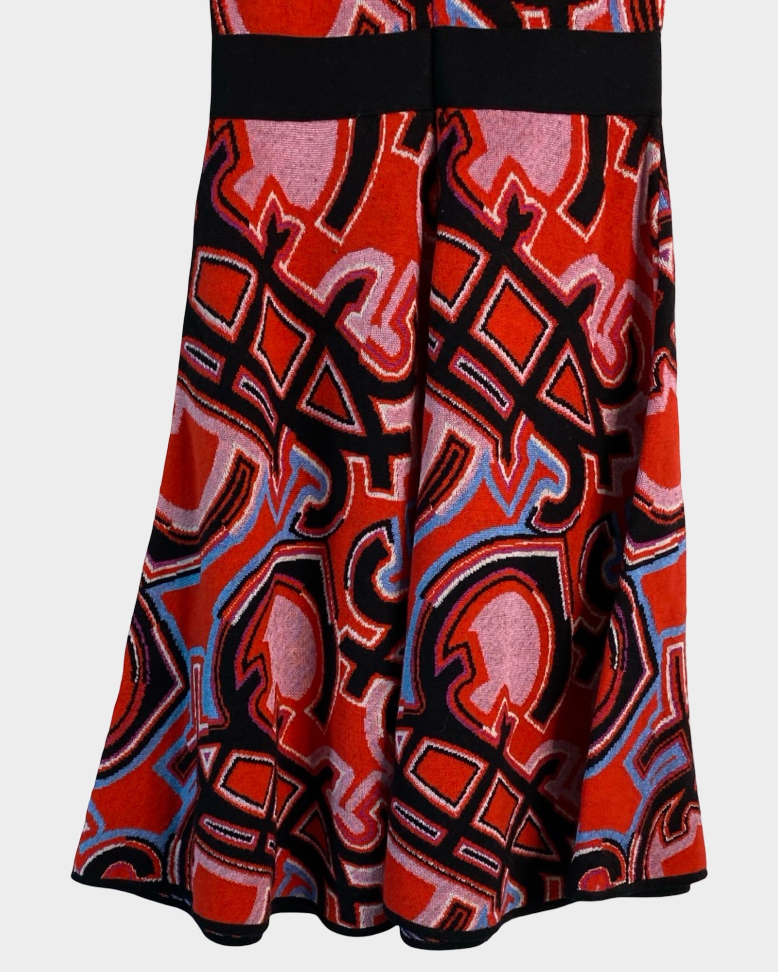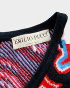 This Emilio Pucci dress captures the designer's signature aesthetic with its vibrant multicolored print and timeless silhouette. The V-neckline frames the face beautifully while the defined waistband creates a flattering, feminine shape. Crafted from a luxurious wool and viscose blend with subtle stretch, relaxed hem—perfect for those who appreciate vintage-inspired elegance with contemporary comfort. A true collector's piece that transitions seamlessly from day to evening.