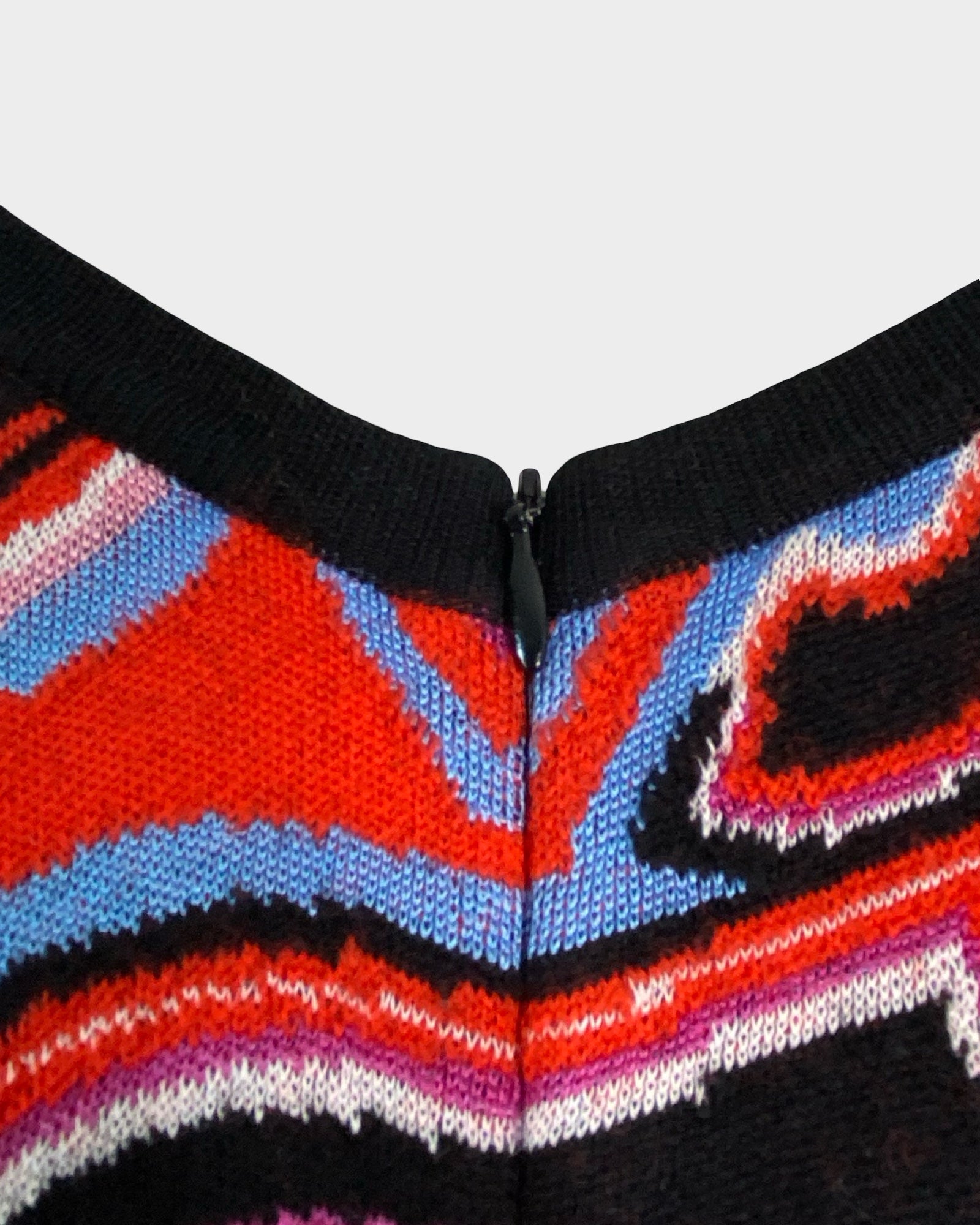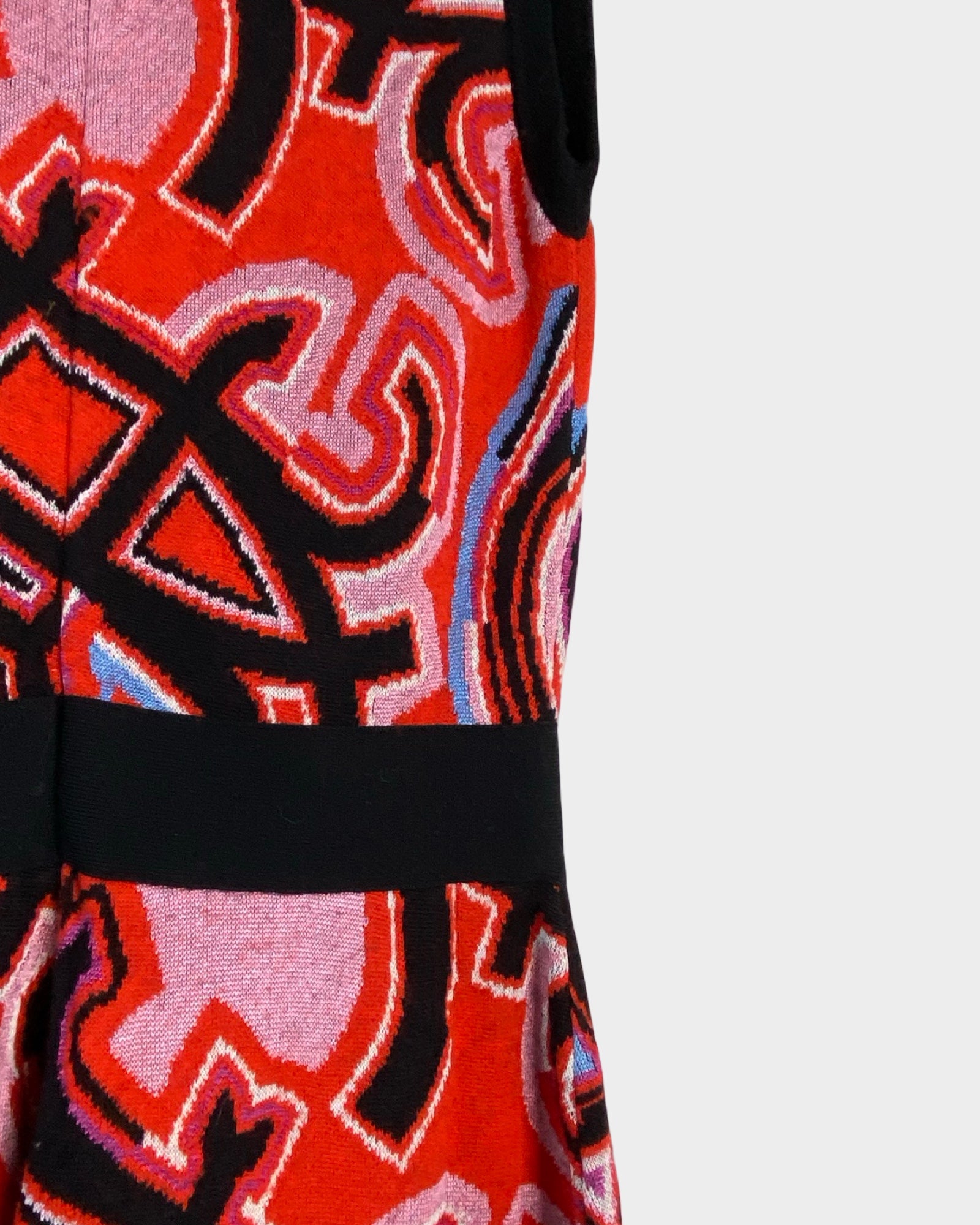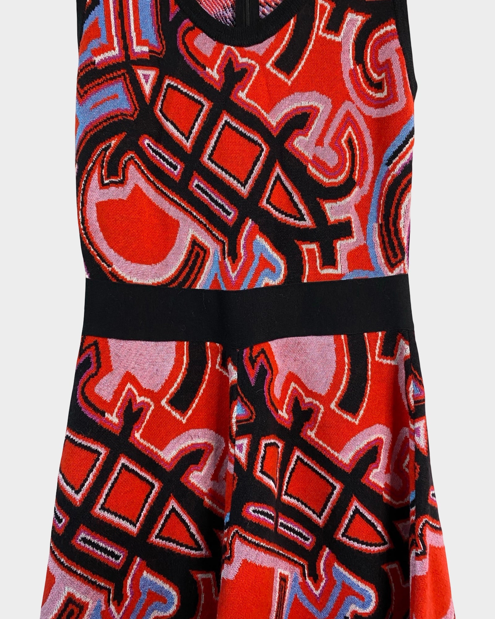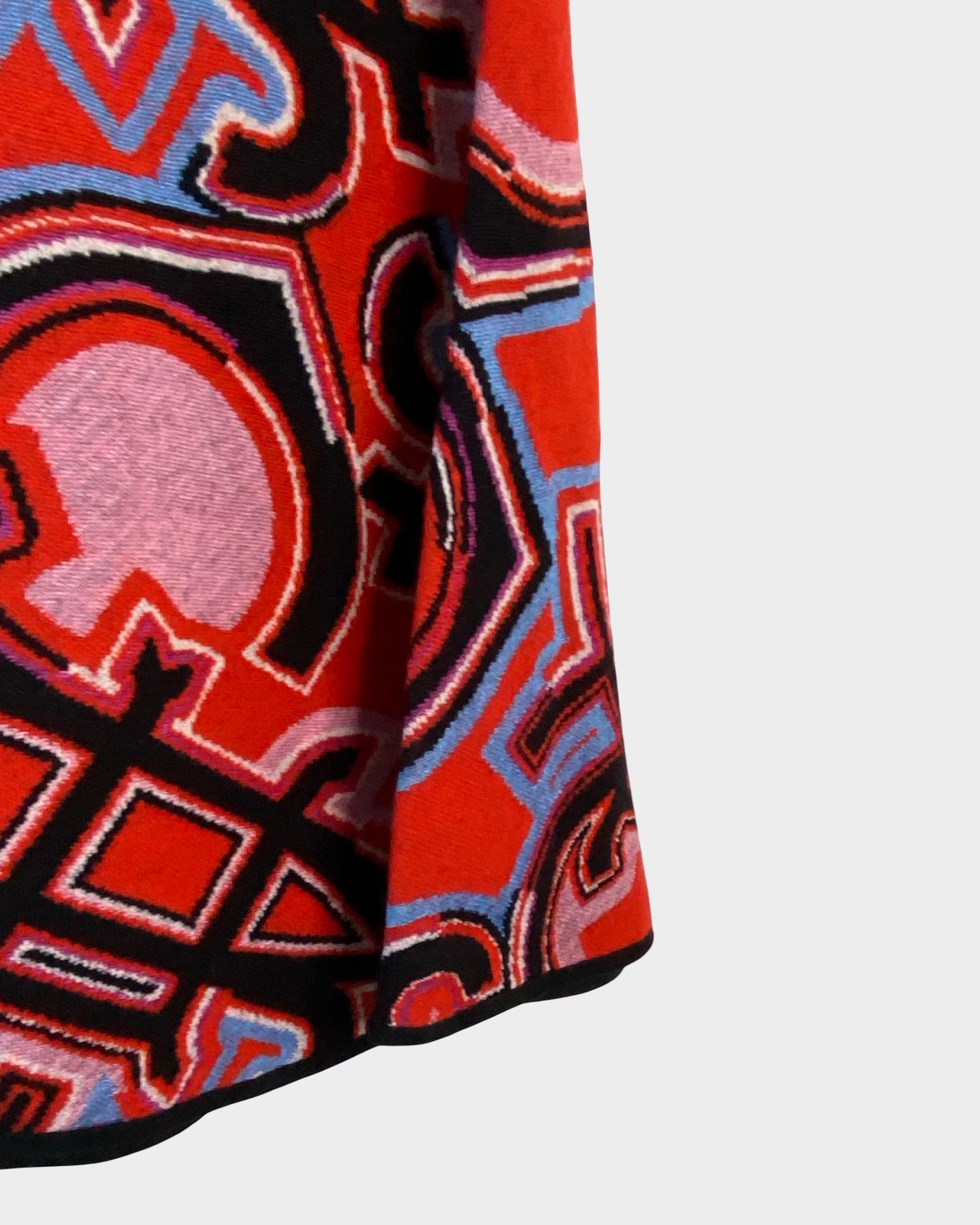 This Emilio Pucci dress captures the designer's signature aesthetic with its vibrant multicolored print and timeless silhouette. The V-neckline frames the face beautifully while the defined waistband creates a flattering, feminine shape. Crafted from a luxurious wool and viscose blend with subtle stretch, relaxed hem—perfect for those who appreciate vintage-inspired elegance with contemporary comfort. A true collector's piece that transitions seamlessly from day to evening.