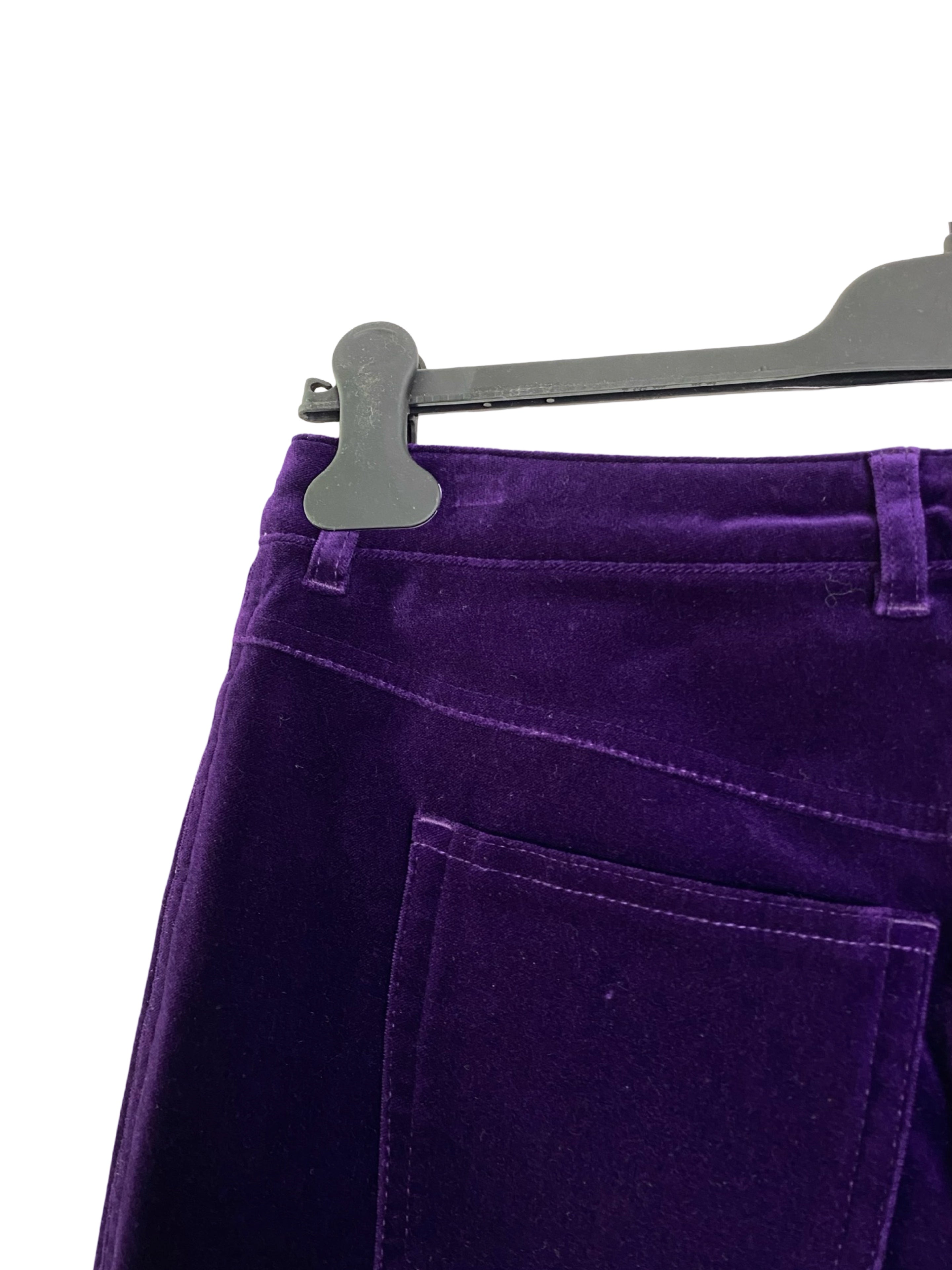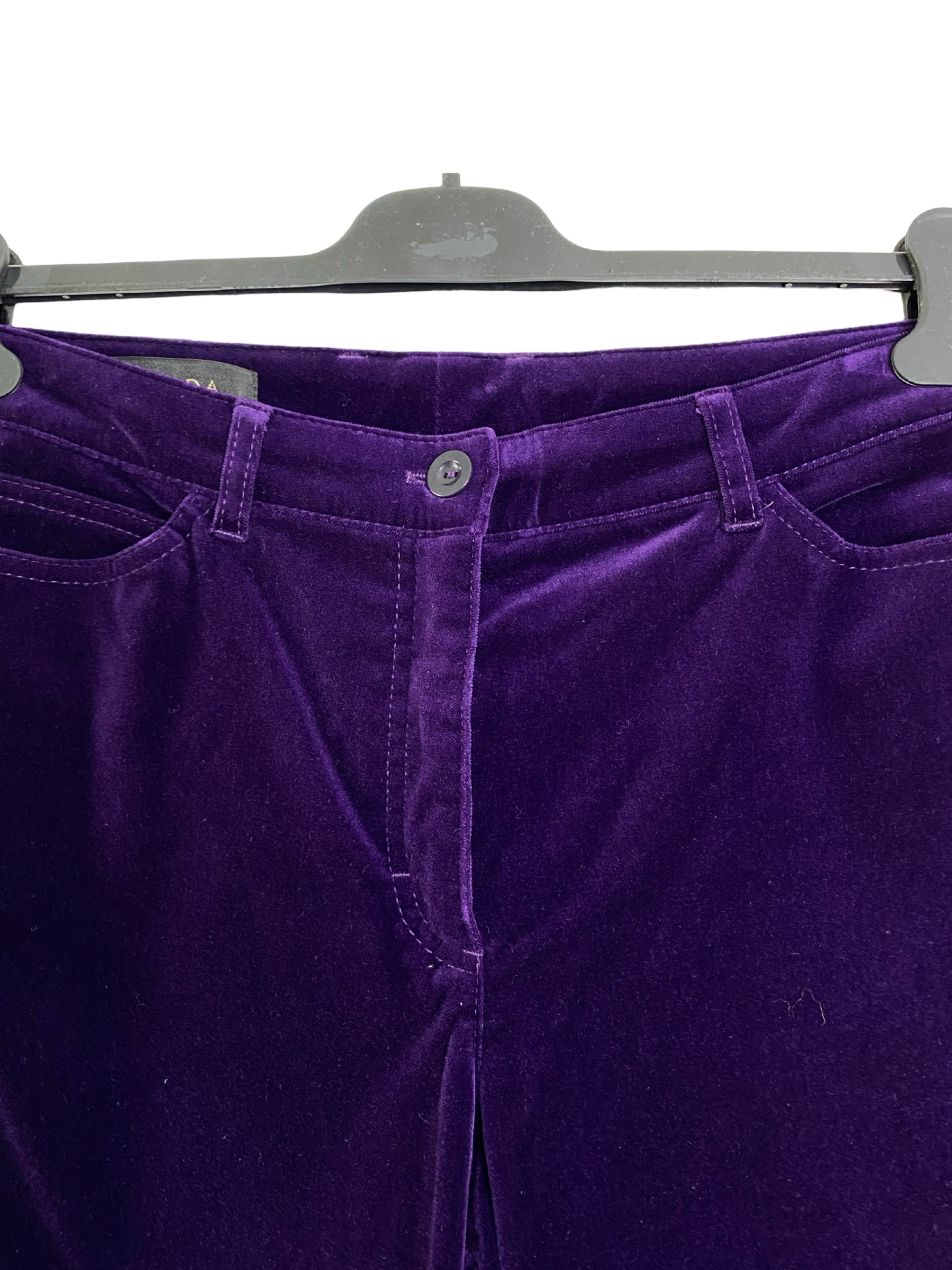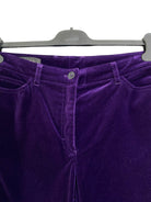 Enhance your everyday wardrobe with these Escada jeans. Crafted from soft and luxurious 95% cotton and 5% elastane, it boasts a rich purple velvet texture. The jeans are designed in a slim fit style.
