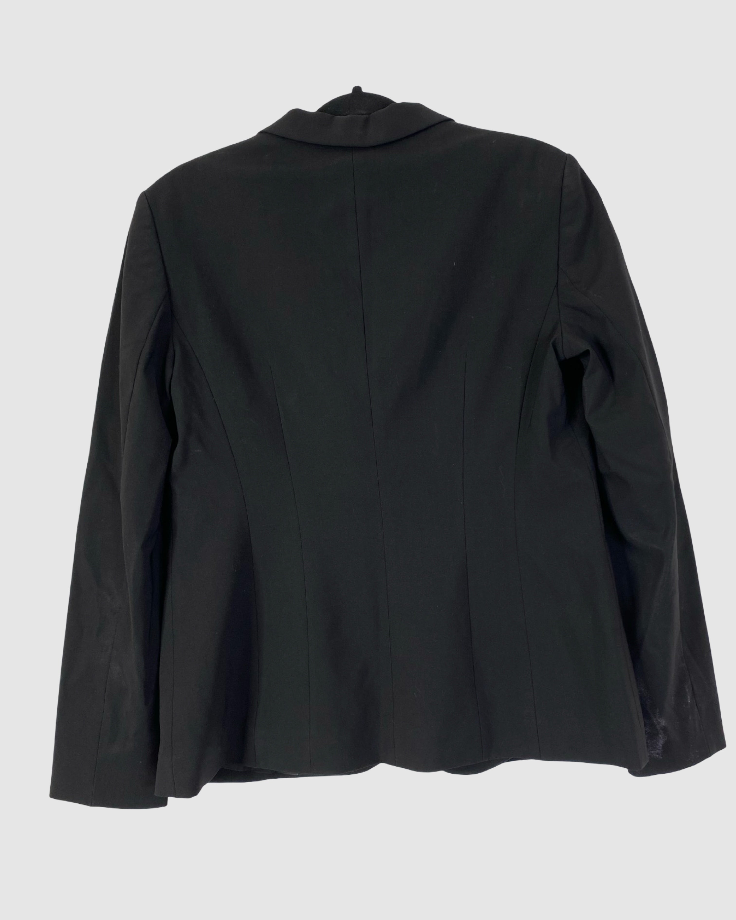 Timeless and refined, this Hugo Boss black blazer offers a sleek, tailored silhouette perfect for both professional and smart-casual looks. Crafted from a viscose and polyester blend with the brand’s signature quality, it’s a versatile wardrobe essential. Size: L.