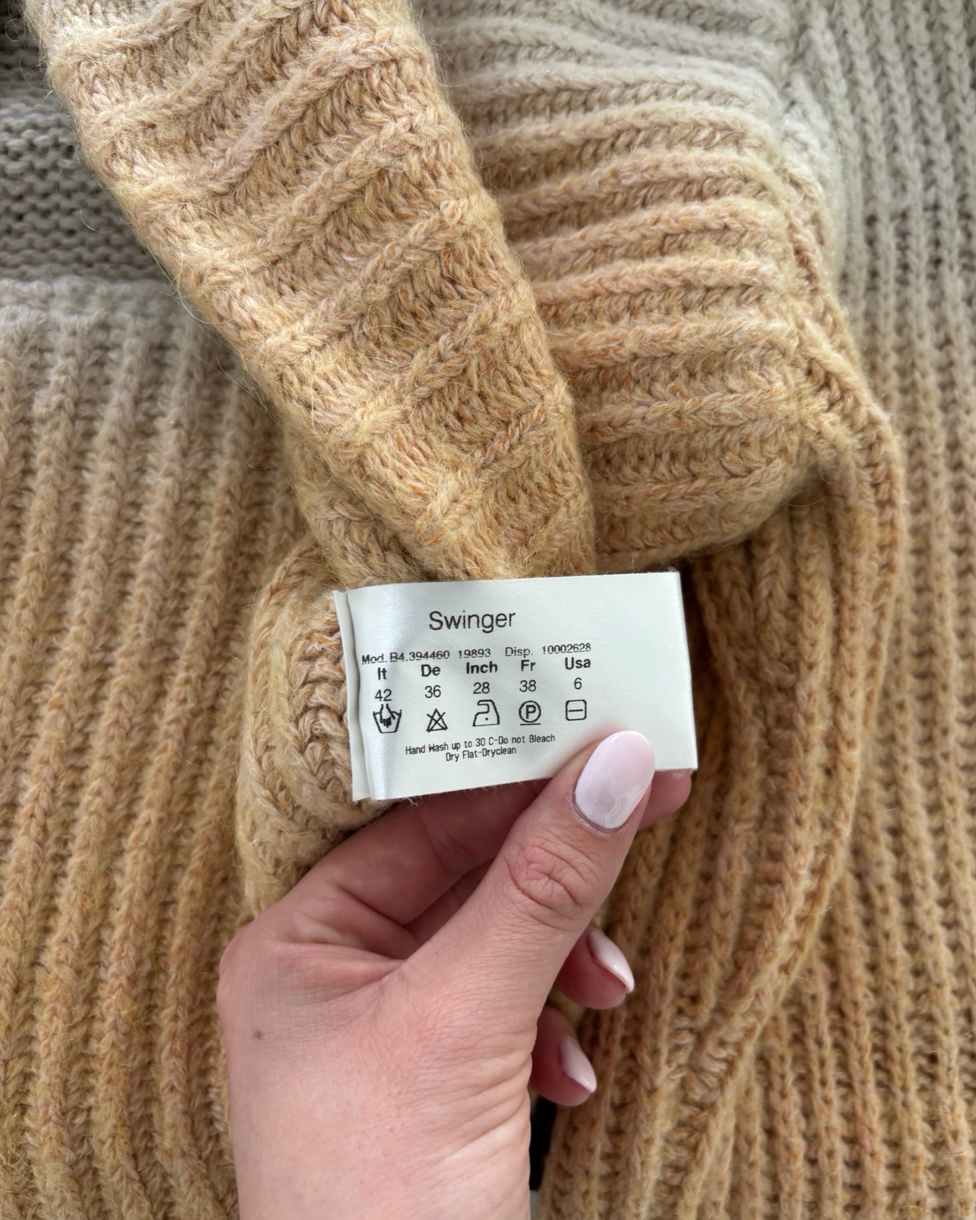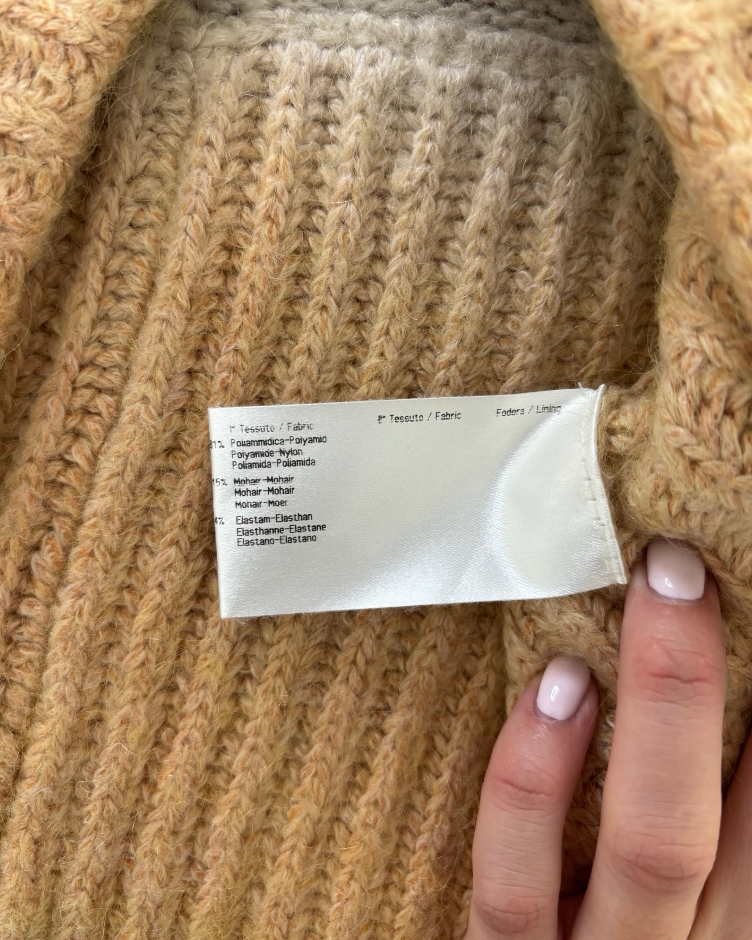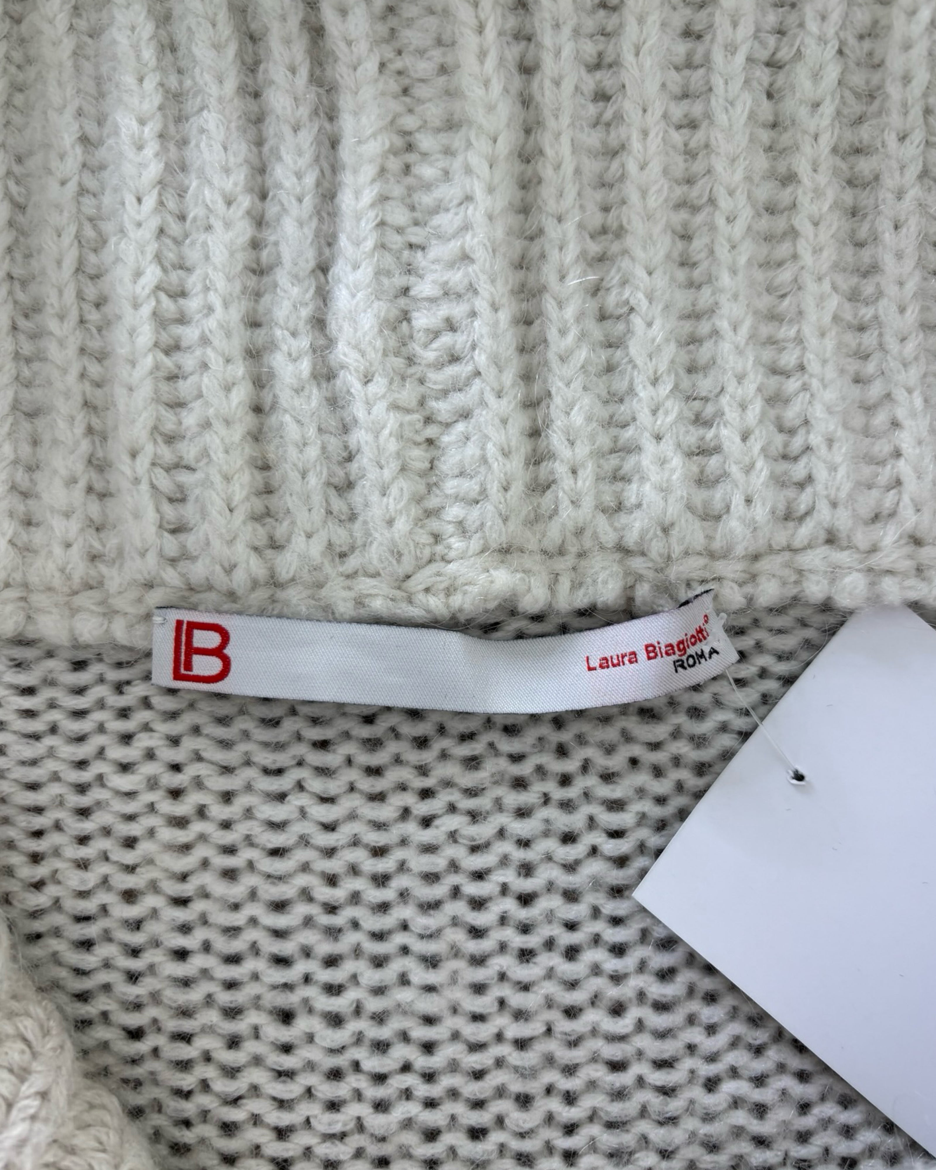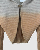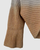 Discover timeless sophistication with this Laura Biagiotti cardigan, a luxurious blend of mohair, polyamide, and elastane crafted for refined elegance. The stunning ombre effect transitions seamlessly from soft off-white to warm peach-orange, creating a captivating visual journey. Flared sleeves add graceful movement, while the bronze and gold closure provides a sophisticated finishing touch. A versatile investment piece that effortlessly elevates any wardrobe with understated luxury and contemporary style.