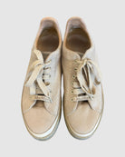 Max Mara Tunny low-top sneakers combine refined simplicity with everyday comfort. Crafted from premium leather with fabric accents and a cushioned tongue, these shoes feature a classic round toeline and secure lace closure. The durable rubber sole ensures reliable traction and longevity. Size 37. A sophisticated choice for those seeking understated elegance in their footwear collection.