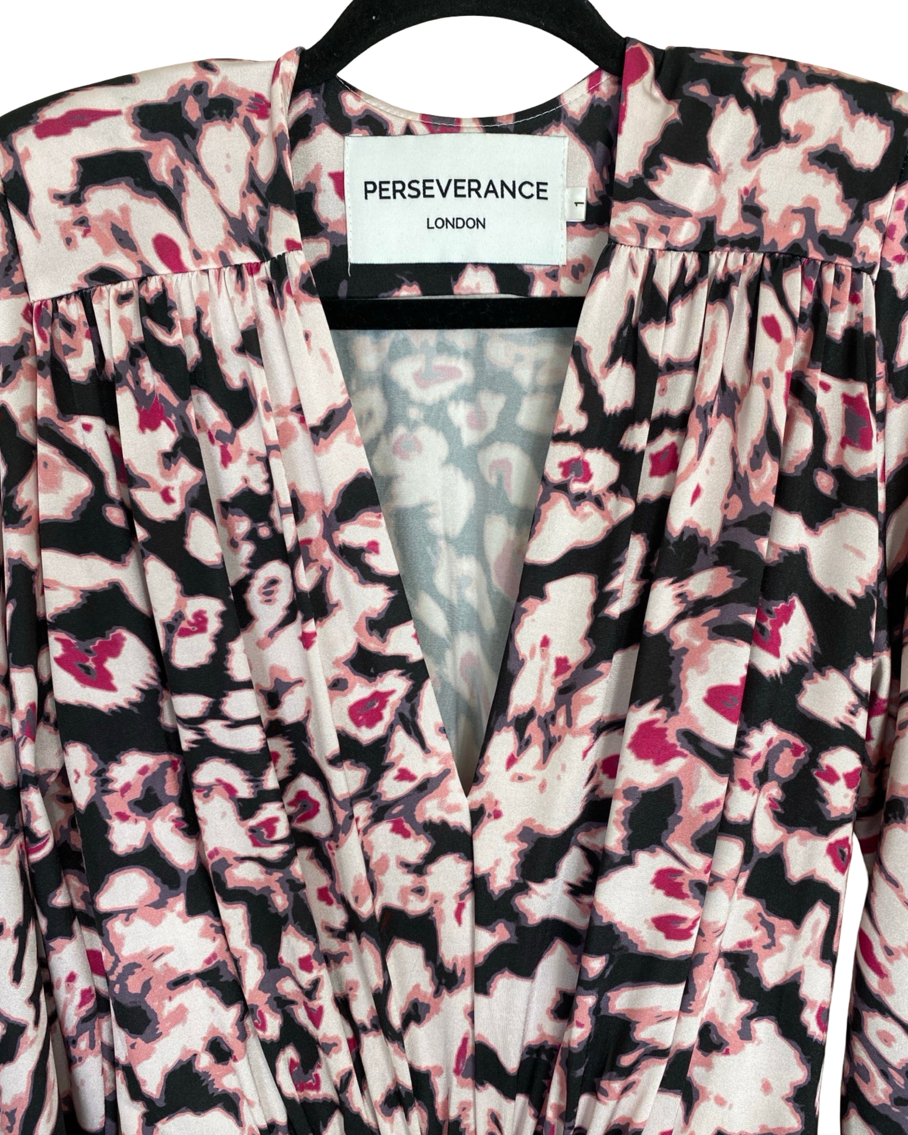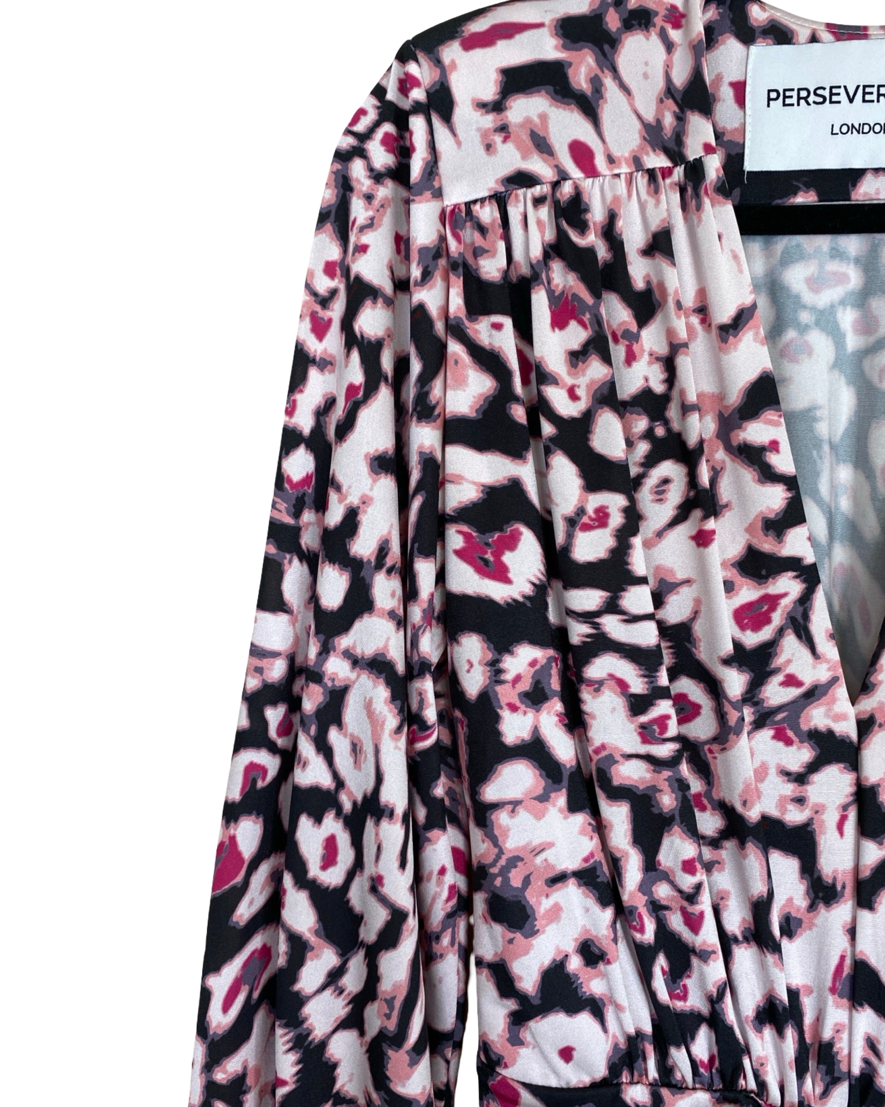 The Perseverance London Long Dress is a stunning piece featuring a striking mix of pink, purple, black, and white tones in a bold leopard-inspired print. Crafted with exquisite attention to detail, it showcases beautiful finishing touches that capture the brand’s signature blend of femininity and edge. Elegant yet statement-making, this dress is perfect for special occasions or for elevating an evening look with effortless sophistication. Made from polyester and elastane, it comes in size S and measures 145 cm in full length, 45 cm from armpit to armpit, and 60 cm in sleeve length.