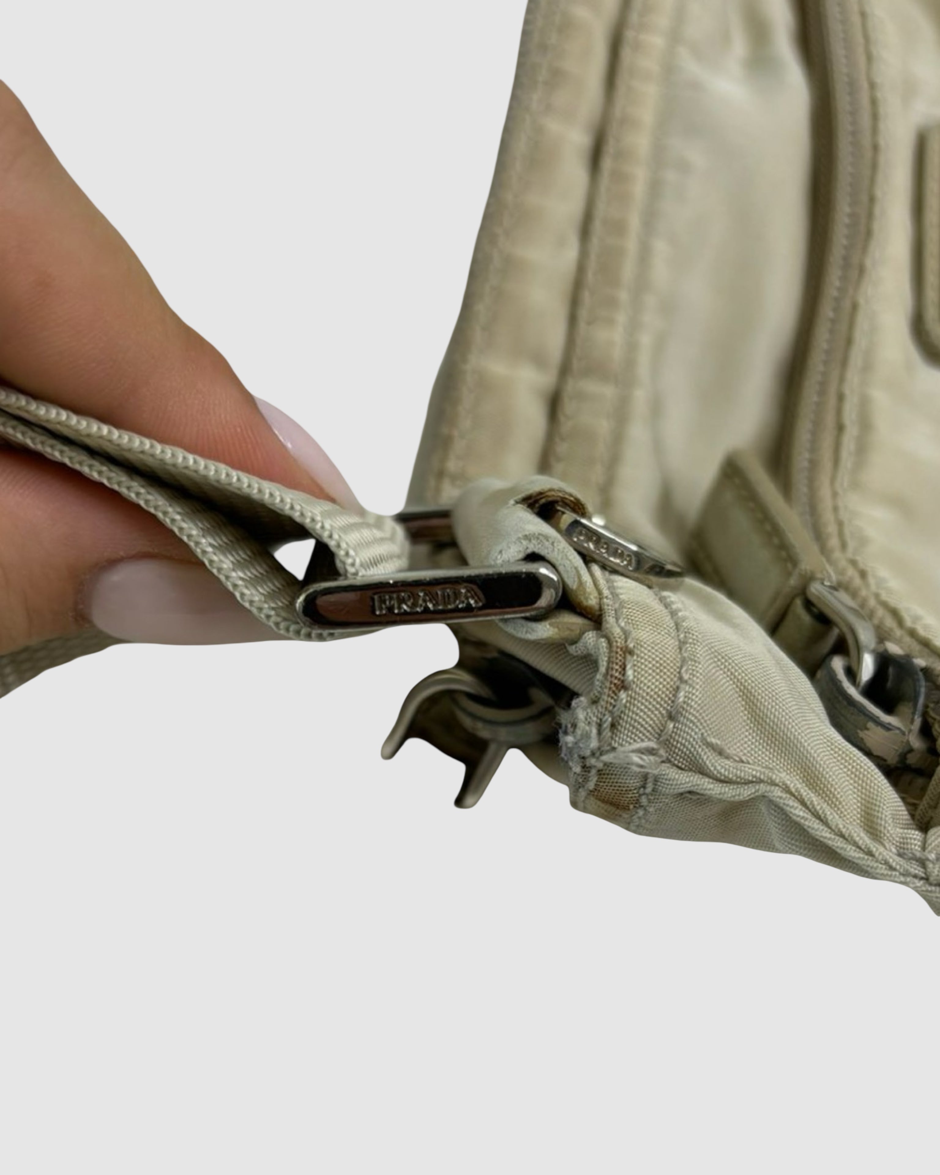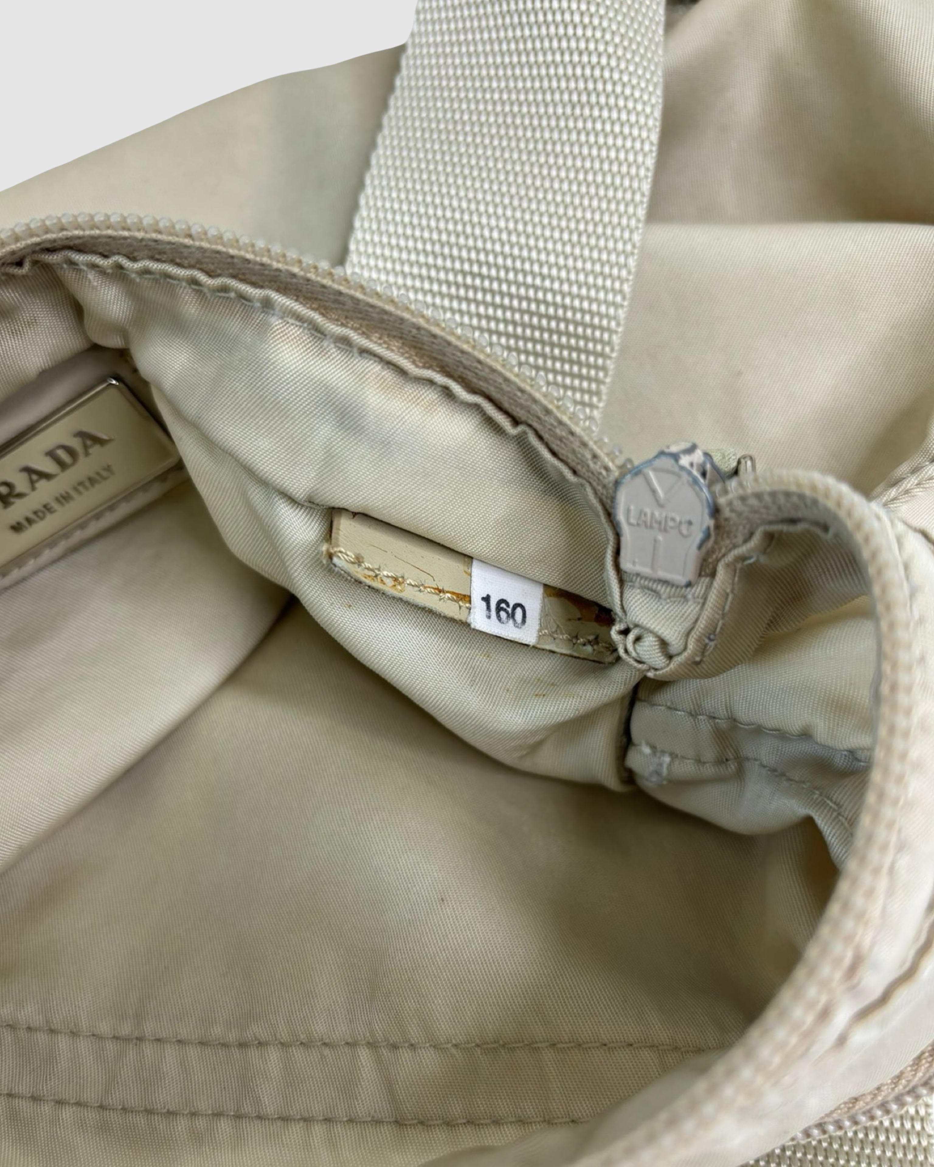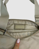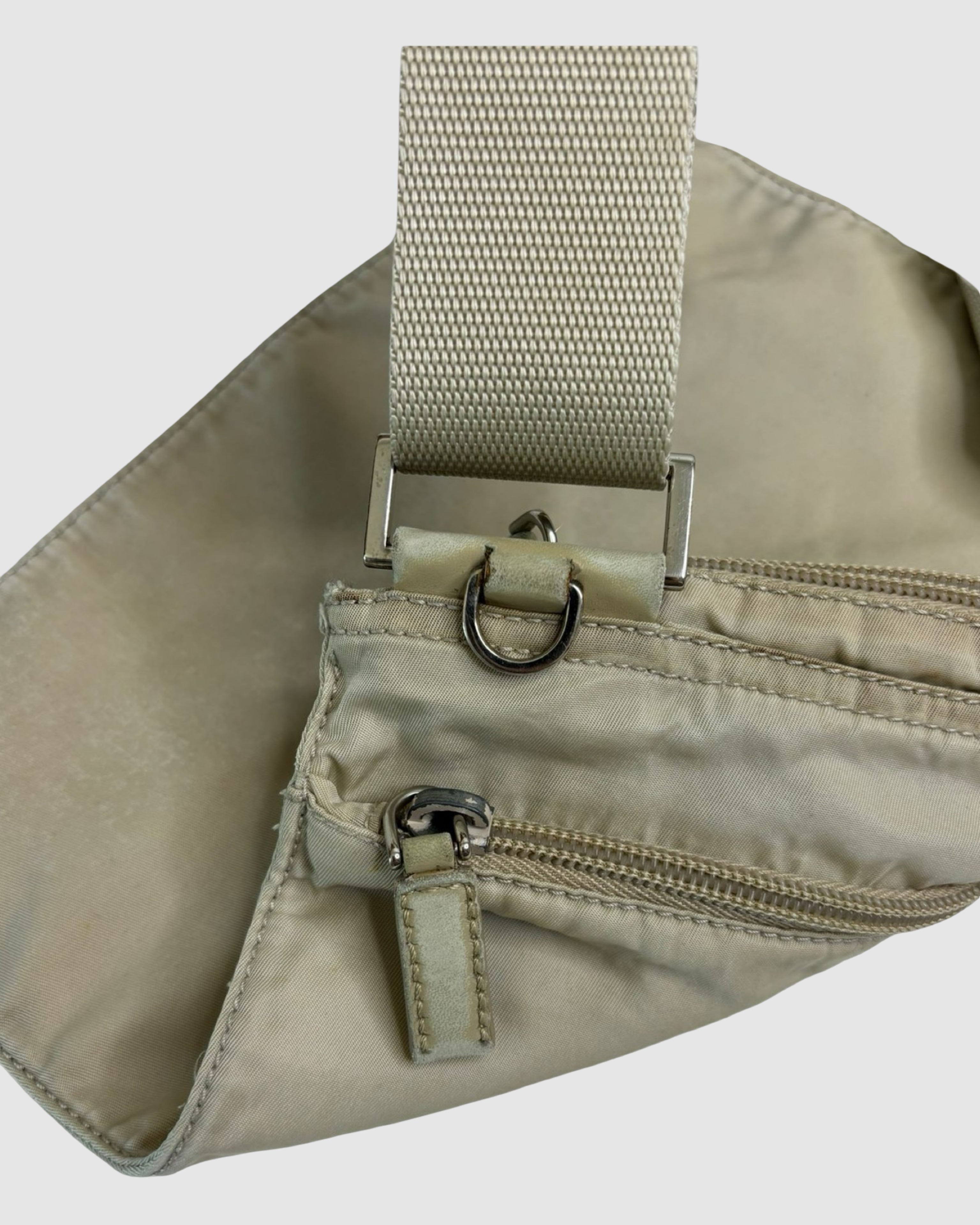 The Prada Tessuto Nylon Flat Messenger Bag in soft beige. Crafted from the brand's signature lightweight nylon fabric, this crossbody style seamlessly blends functionality with refined elegance. The structured flat silhouette and adjustable strap make it an ideal companion for everyday use. Will be sold with original dustbag.